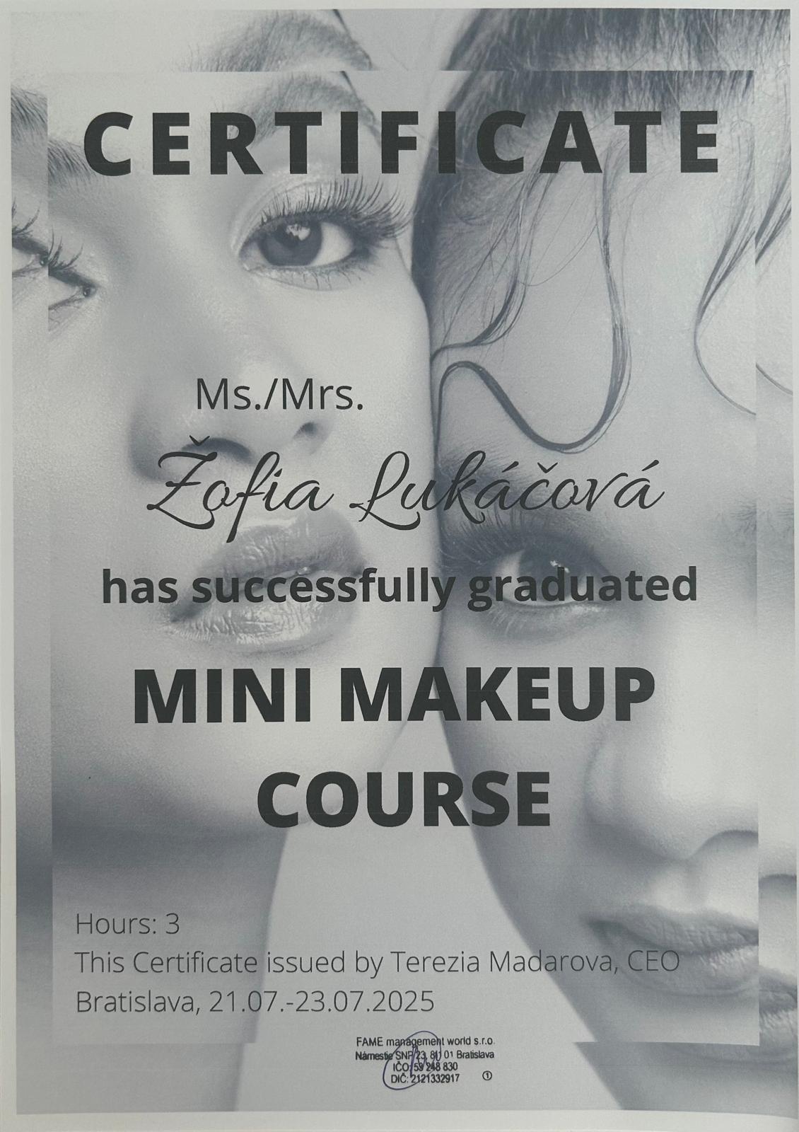 Volám sa Žofia a už viac ako 5 rokov sa venujem tvorbe make-upu a účesov. Mojou vášňou je podčiarknuť prirodzenú krásu každej ženy a vytvoriť look, v ktorom sa bude cítiť sebavedomo a jedinečne. Rada sa postarám o líčenie aj účes na svadby, oslavy, fotenia či iné špeciálne príležitosti.